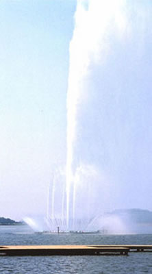 一般指喷水高度在百米以上的喷泉,也常常称为百米喷泉,水柱从湖面一跃而起,迅速升至百米高处,从远处望去,犹如一条从湖中喷薄而出的巨龙。同时,百米喷泉还配有灯光和激光,气势磅礴辉煌,壮丽。
